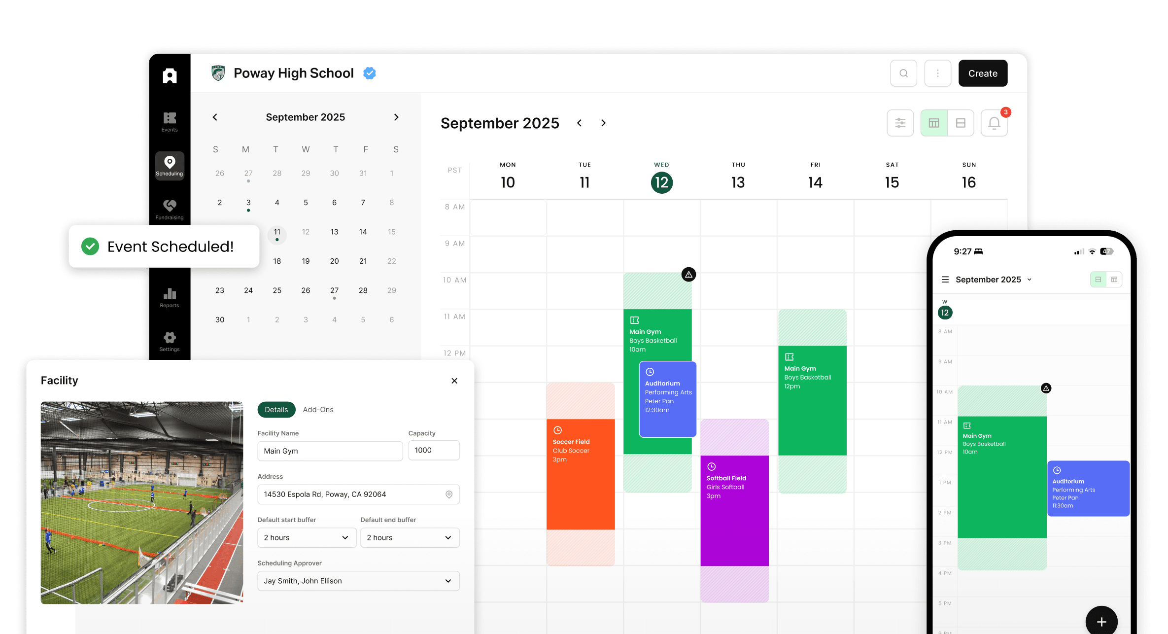 Coordinate courts and fields with real-time availability, approvals, and conflict prevention.
