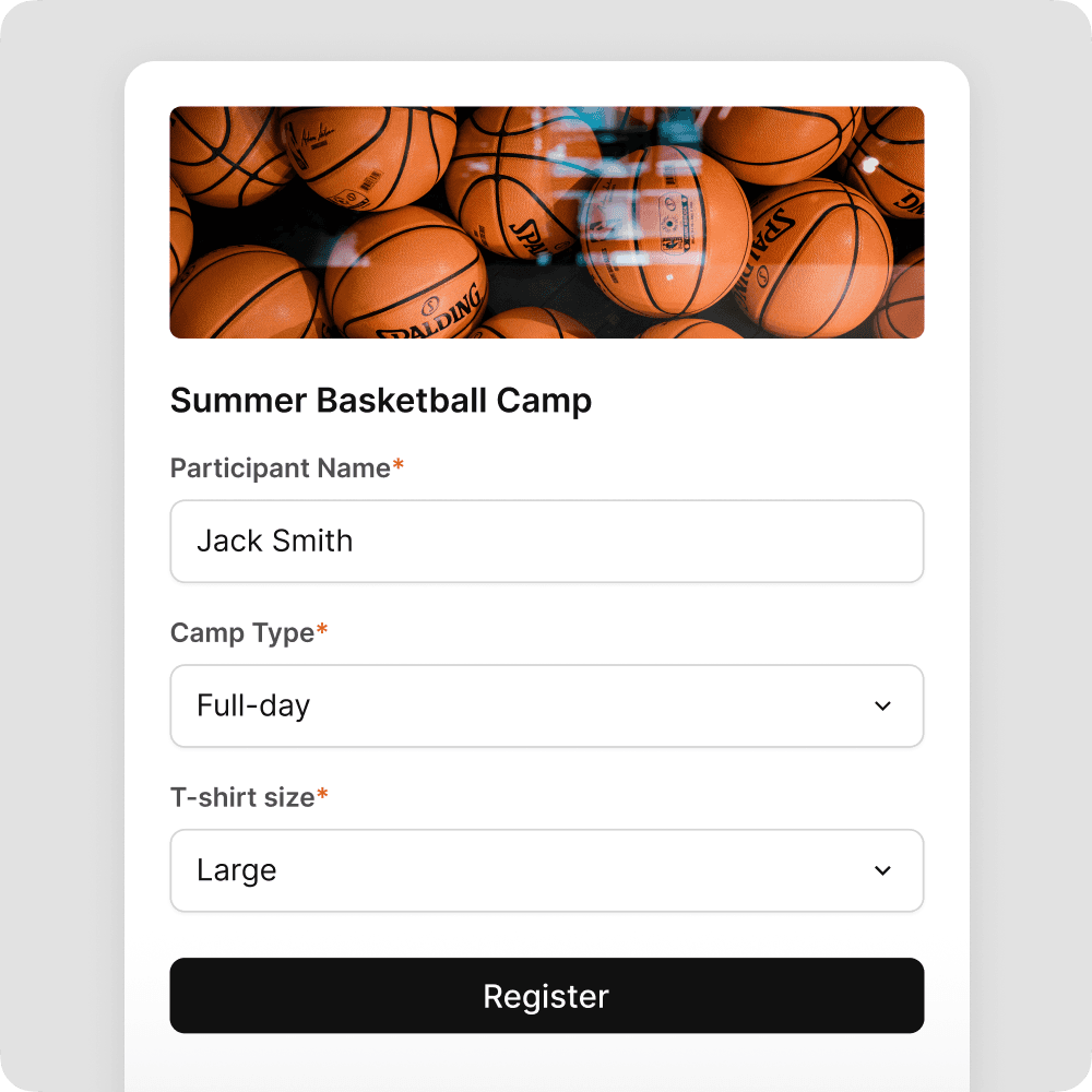 Set up free or paid registration with capacity limits and automatic waitlists. Every sign-up connects to the calendar and reporting — no separate registration platform needed.