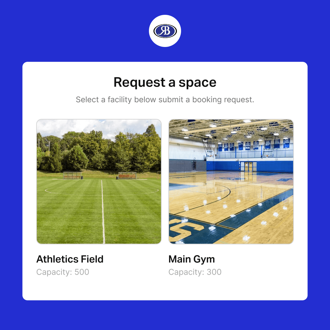 Create gyms, fields, rooms, and courts. Assign approvers and set scheduling rules for each space.