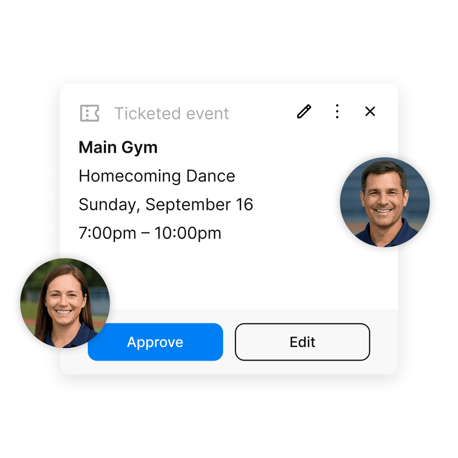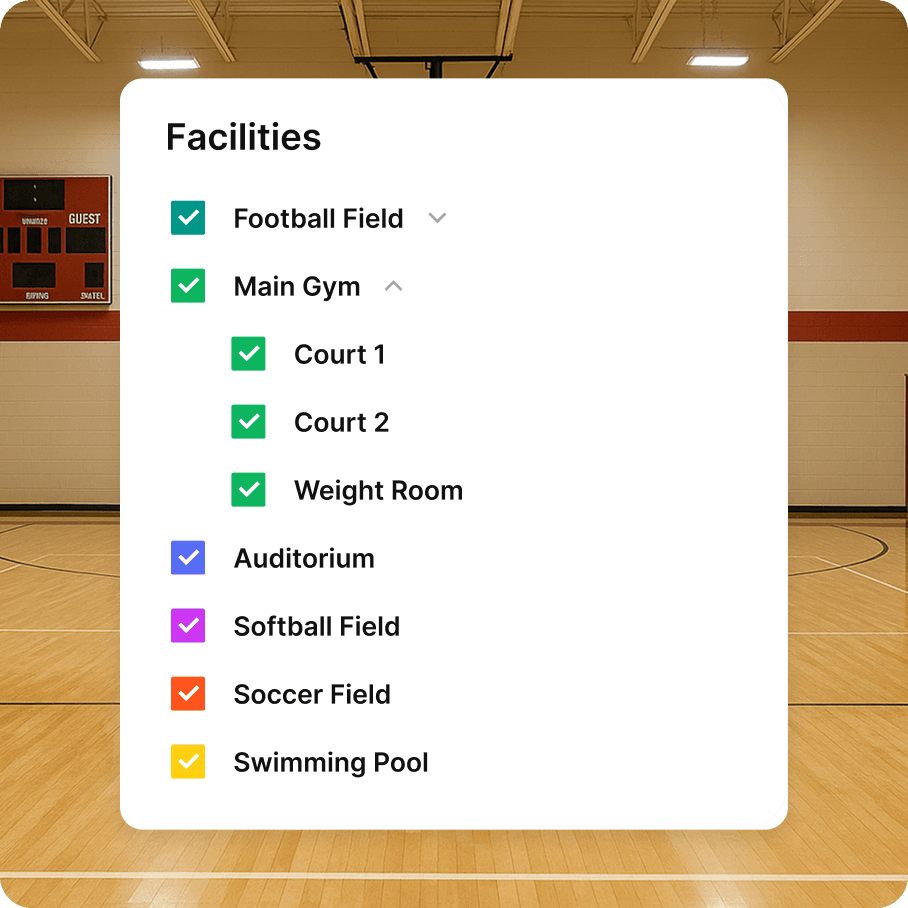 Organize practices, rentals, and events with a shared calendar built for approvals, conflict prevention, and day-to-day facility coordination.